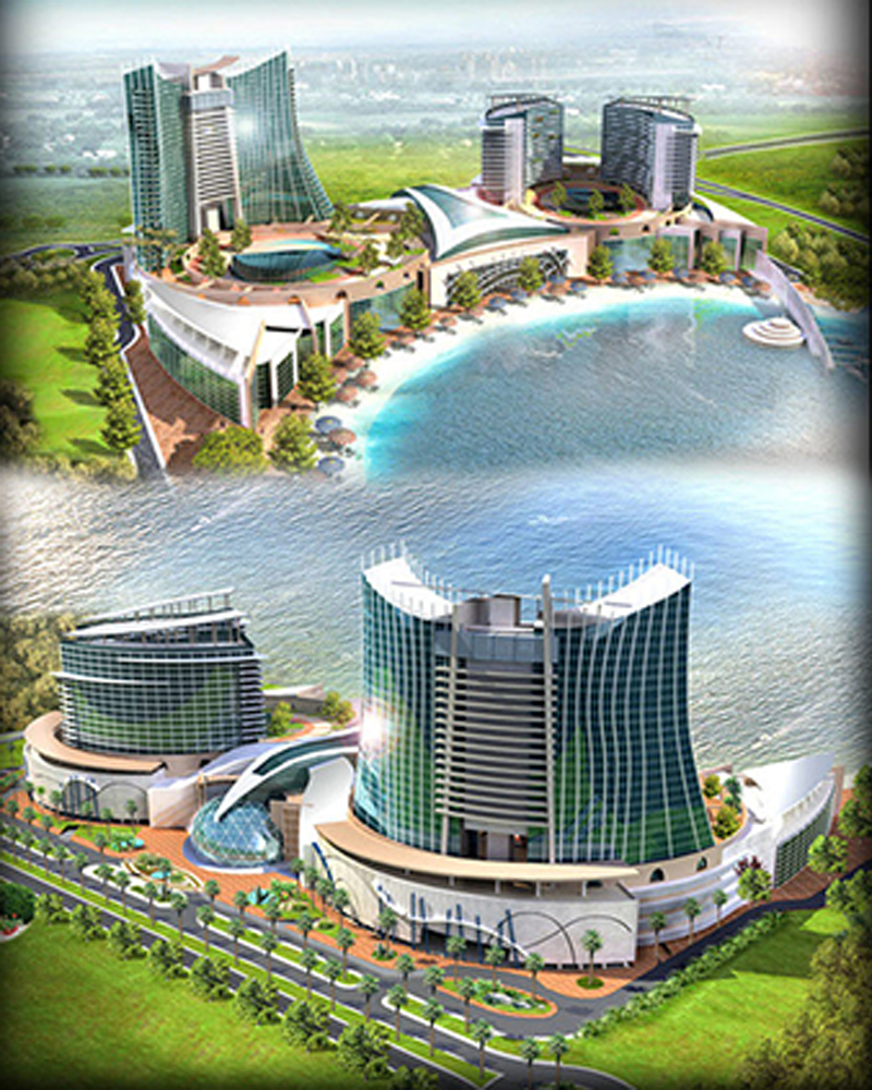 The project consists of two vertical towers with 15 floors, a hotel tower with 35 floors , a commercial mall and parking with 4 floors.